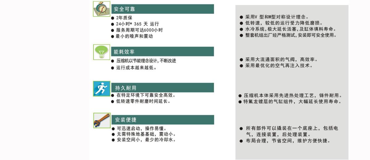 整套機(jī)組出廠(chǎng)經(jīng)嚴(yán)格測(cè)試,安裝即可安全使用,特氟龍鍍層的氣缸組件,大幅延長(zhǎng)使用壽命